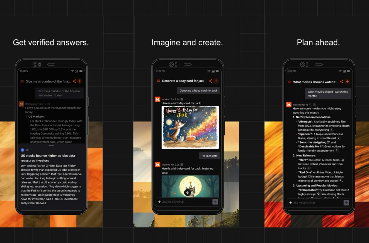 Avec son application, Mistral rend accessibles au plus grand nombre les technologies qu’il a développées. Le Chat peut évidemment répondre à vos questions du quotidien, mais également vous tenir informé de l’actualité, notamment grâce à un partenariat historique récemment noué avec l’agence de presse AFP. La génération d’images est également au programme.