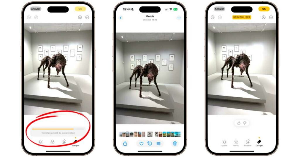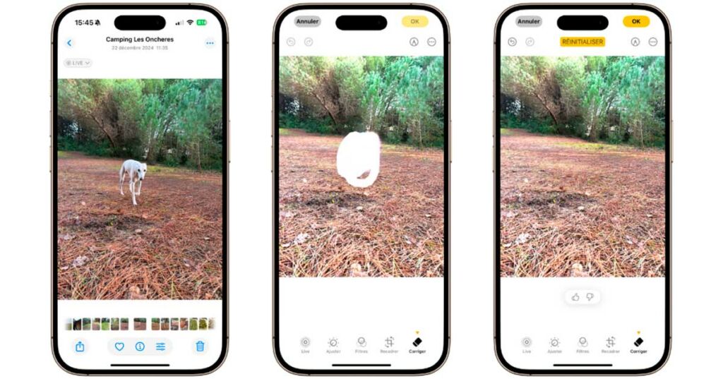 Apple Intelligence brille surtout dans Photos. La fonction Clean Up permet d’effacer un élément indésirable d’une image en un instant, et le rendu est impressionnant la plupart du temps. Il faut vraiment un arrière-plan très complexe pour que la fonction soit prise en défaut. Un vrai plus pour les retouches rapides, bien que moins avancé que les outils similaires qu’on trouve chez Google.