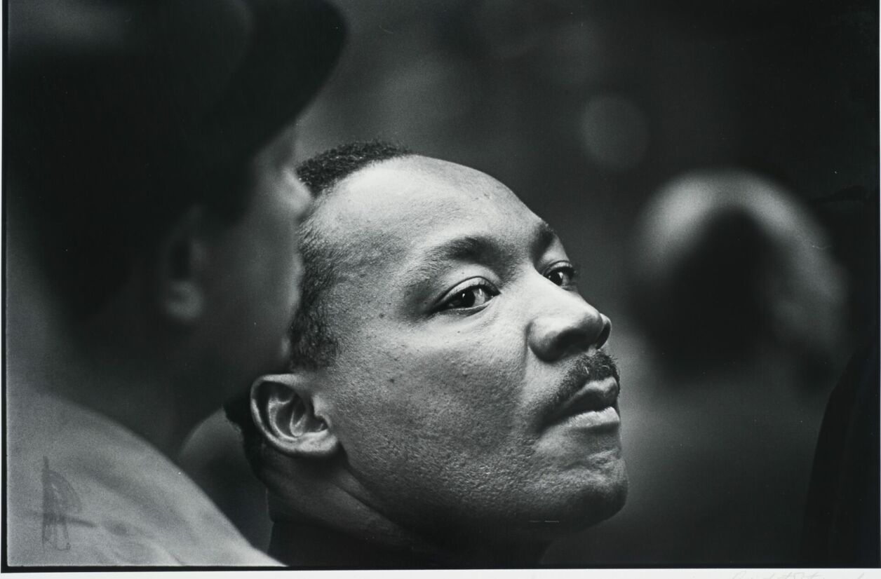 Martin Luther King, véritable symbole d’espoir, apparaît ainsi d’une humeur sombre. Le détail de sa posture et le plan serré apportent, par ailleurs, une certaine puissance à cette image. Le visage serré, le menton haut, le regard grave… On découvre l’activiste tel qu’on ne l’avait encore jamais vu. Ainsi, Benedict Fernandez a su saisir une nouvelle facette du pacifiste, son charisme mais aussi ses tourments dans une œuvre puissante et historique.