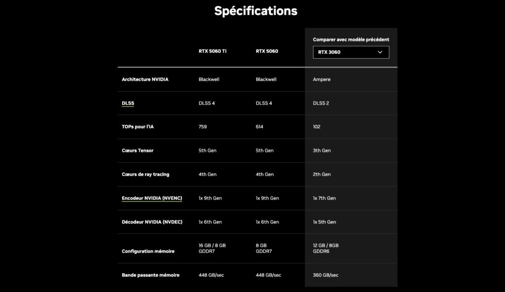 Ce que les RTX 5060 et 5060 Ti ont dans le ventre