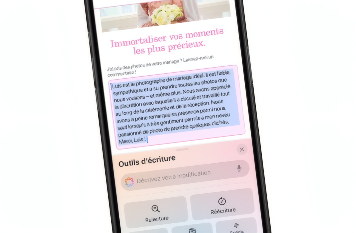 Avec Apple Intelligence, Apple met enfin les pieds dans l’intelligence artificielle. La suite d’outils comprend notamment un générateur d’images, une gomme magique pour vos photos, mais aussi des « outils d’écriture » qui vous aident à rédiger des messages ou à les reformuler selon différentes consignes.