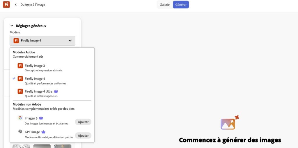 Accessible depuis une interface web repensée, l’IA Firefly invite ses petits copains à la fête. On parlait plus haut de ChatGPT, mais Imagen 3 de Google est aussi de la partie, et d’autres seront prochainement ajoutés. Des modèles de génération d’images concurrents du Firefly Image 4 et Image 4 Ultra conçus par la marque américaine, qui permettront aux utilisateurs et utilisatrices d’expérimenter au même endroit avec différents modèles pour trouver celui qui correspond le mieux à leurs besoins.