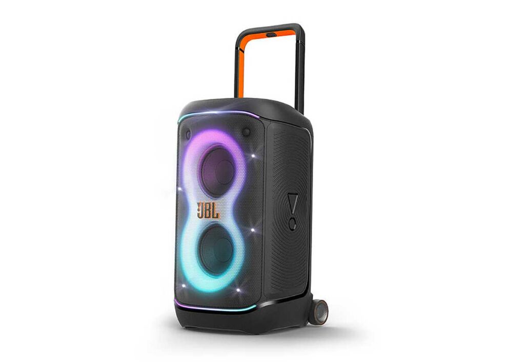 Présentée par la marque comme l’enceinte sur batterie la plus puissante de la gamme PartyBox à ce jour, la JBL PartyBox 520 est destinée aux événements d’ampleur. Pour faciliter son transport, elle est équipée d’une poignée télescopique et de roues larges. Son autonomie annoncée atteint 15 heures sur une seule charge et une fonction de recharge rapide permet d’obtenir 2 heures de lecture pour 10 minutes de charge d’après les dires de JBL.
