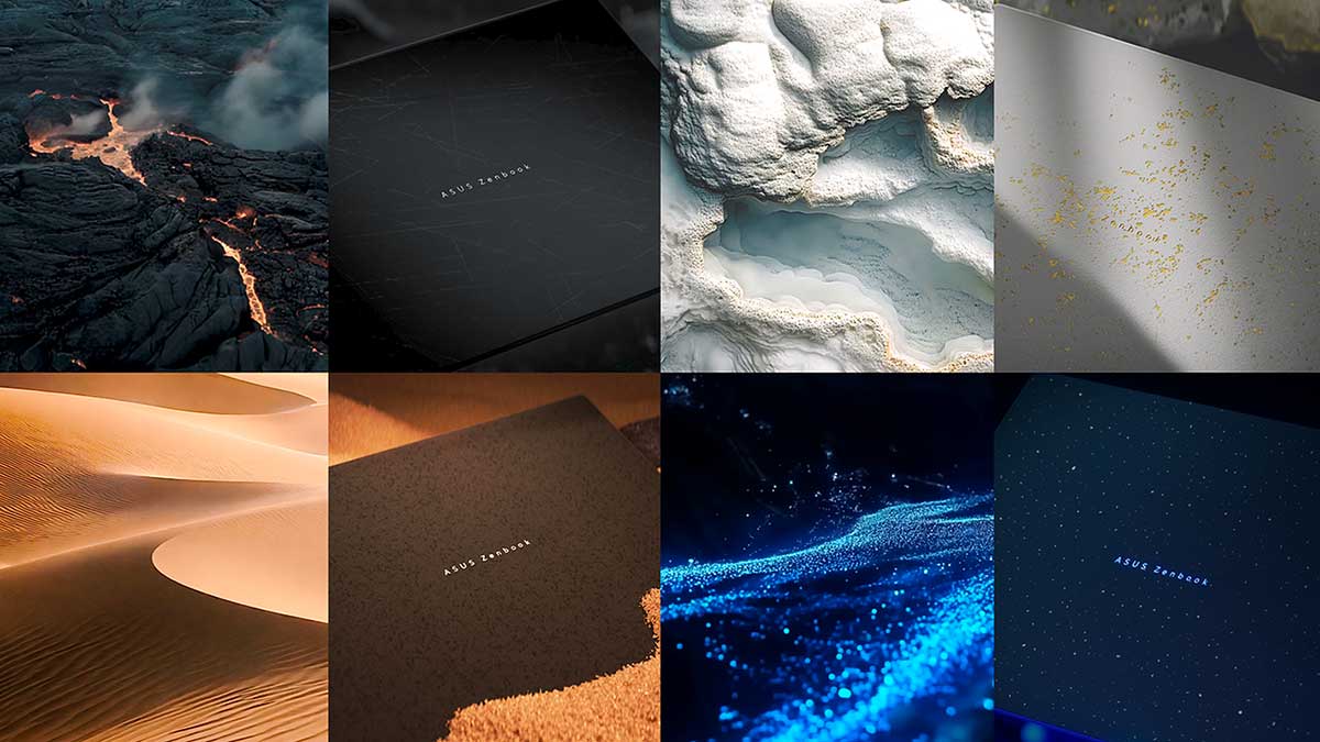 La série Zenbook Ceraluminum Signature Edition se décline en quatre finitions distinctes (Obsidian Black, Pamukkale White, Terra Mocha, Luminous Blue), chacune puisant son inspiration dans des paysages naturels spécifiques, comme les volcans islandais, les terrasses calcaires turques, les déserts jordaniens ou les rivages bioluminescents des Maldives. Pour obtenir ces rendus uniques, Asus indique utiliser des procédés de fabrication particuliers aux noms compliqués, comme le frittage laser ou l’oxydation induite par laser. La marque promet que chaque appareil possède ainsi un motif qui lui est propre.