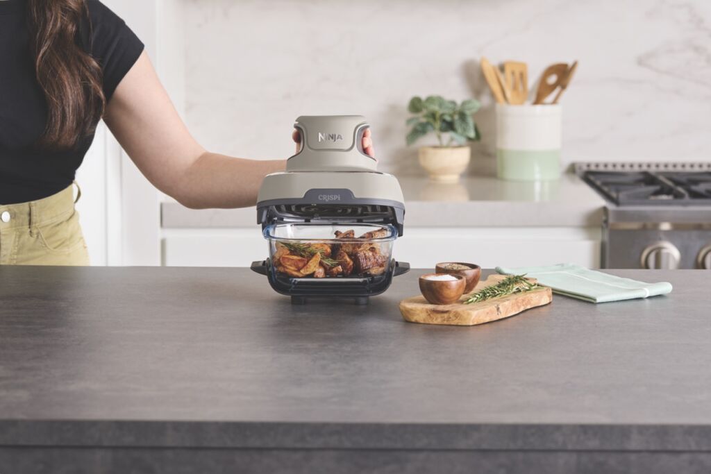 Avec cet airfryer d’un nouveau genre, Ninja s’adresse aux adeptes de batch cooking, à celles et ceux qui veulent une solution astucieuse pour éviter le gaspillage et aussi aux consommateurs et consommatrices en manque d’espace. Car le Crispi a un autre atout : tous ses éléments sont empilables et il est suffisamment compact pour être rangé dans un placard.