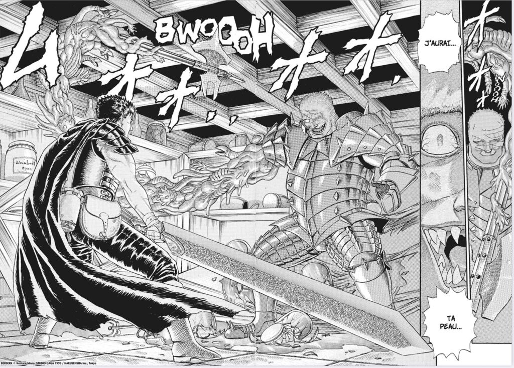 Glénat n’a pas encore fixé de cadence officielle au-delà des deux premiers volumes, mais on sait déjà que le troisième tome sortira le 5 novembre prochain. Si l’on suit la logique des doubles recueils, le catalogue complet des 42 tomes actuellement disponibles nécessiterait 21 volumes Prestige. On se dirige donc vers un chantier à long terme, surtout pour une série toujours en cours au Japon. En effet, rappelons que si Miura s’en est allé vers un monde meilleur, son univers continue de s’étendre à travers le Studio Gaga et le scénariste Kōji Mori.