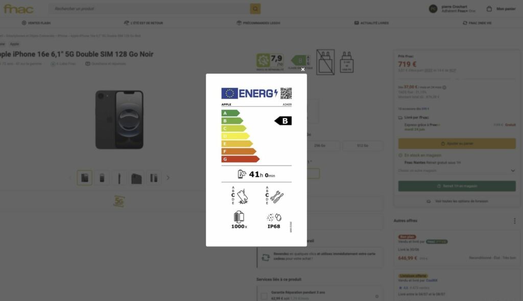 Entrée en vigueur samedi 21 juin 2025, la nouvelle réglementation européenne oblige les fabricants de smartphones et de tablettes à fournir davantage de détails sur leurs produits afin de se voir attribuer un score de durabilité – une sorte de « nutriscore du numérique ». Un label désormais présent sur les fiches produits de tous les articles correspondants, notamment à la Fnac, qui vise à informer les consommateurs sur les dessous de la configuration technique des produits qu’ils souhaitent acquérir.