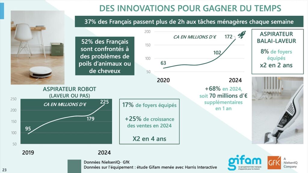 Cette recherche d’innovation participe à booster le marché. L’association HOP le confirme, déplorant que 39 % des aspirateurs soient renouvelés alors qu’ils sont encore fonctionnels (source : enquête Occurrence-groupe Ifop pour HOP, 2025).