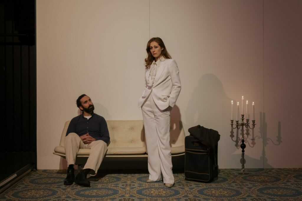 Tiago Rodrigues, auteur et metteur en scène – actuellement directeur du festival –, imagine ici un prétexte de science-fiction pour interroger nos rapports au temps, à la mémoire et à l’amour quand tout devient différé. Entre les deux personnages, le temps est compté. Alors, on se dit ce qu’on ne dit jamais : les peurs, les failles, les doutes. Peut-on partir sans prévenir ? Peut-on aimer sans souvenir ? Peut-on être là, malgré l’absence ?