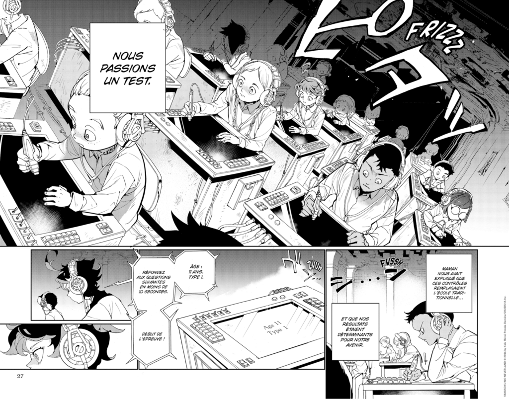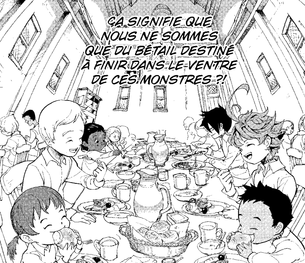 Un orphelinat d’apparence idyllique, baigné de lumière et de rires : promesse d’un refuge où les enfants grandissent libres et sereins. Mais, dès les premières pages, The Promised Neverland révèle son vrai visage. Derrière ce décor angélique : des orphelins élevés comme du bétail, destinés à nourrir d’impitoyables créatures.