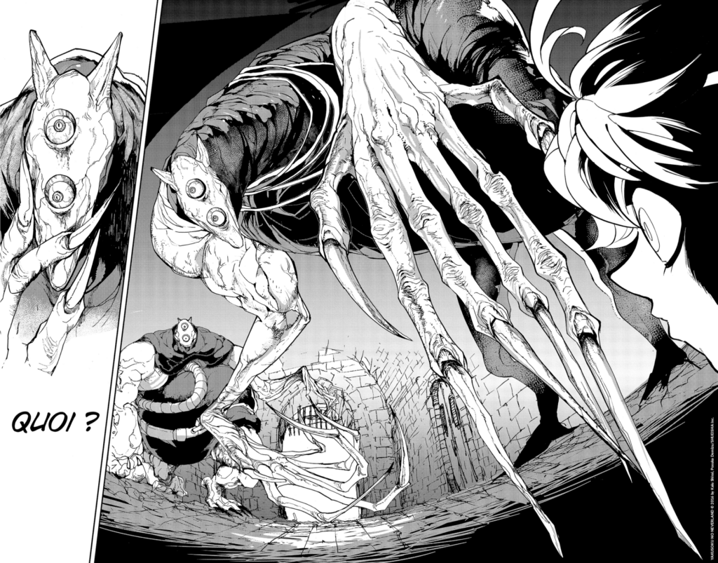 Demizu-sensei : J’aime ces atmosphères, mais je ne les recherche pas systématiquement, je me laisse guider par les univers que j’affectionne. The Promised Neverland m’a permis de forger mon propre style, en grande partie grâce à la vision de Shirai-sensei.
