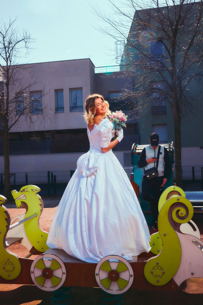 Oui, aujourd’hui, je me sens adulte. Beaucoup plus que quand j’ai commencé à jouer la première version de Fille à papa. C’est d’ailleurs pour cette raison, aussi, que l’on a voulu refaire l’affiche. Au début, Fille à papa, c’était très féerique : je sautais en l’air, il y avait un côté très enfantin. Aujourd’hui, j’ai envie de garder cette part d’enfance – d’où la licorne –, mais en robe de mariée. Pour raconter autre chose du spectacle.