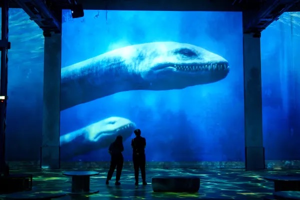 Dinosaures, l’expérience immersive est narrée par Gérard Lanvin. L’acteur guide les spectateurs dans l’univers des dinosaures et des créatures préhistoriques, allant des ptérosaures aux mosasaures, jusqu’au mythique Tyrannosaurus rex. En famille, on entre au cœur des habitats préhistoriques, on observe les dinosaures et créatures marines grandeur nature, et on en apprend plus sur leur rôle dans l’évolution de notre planète.