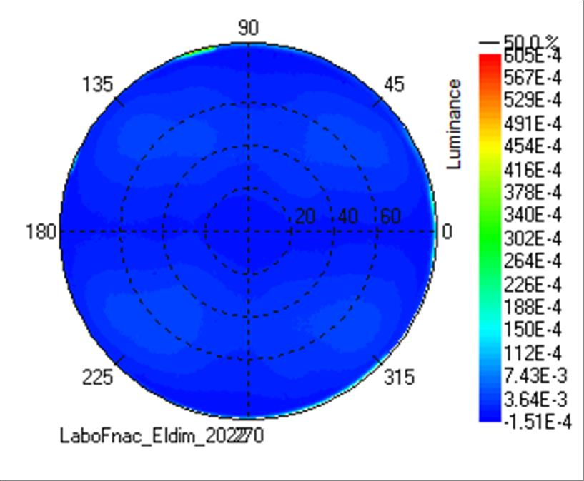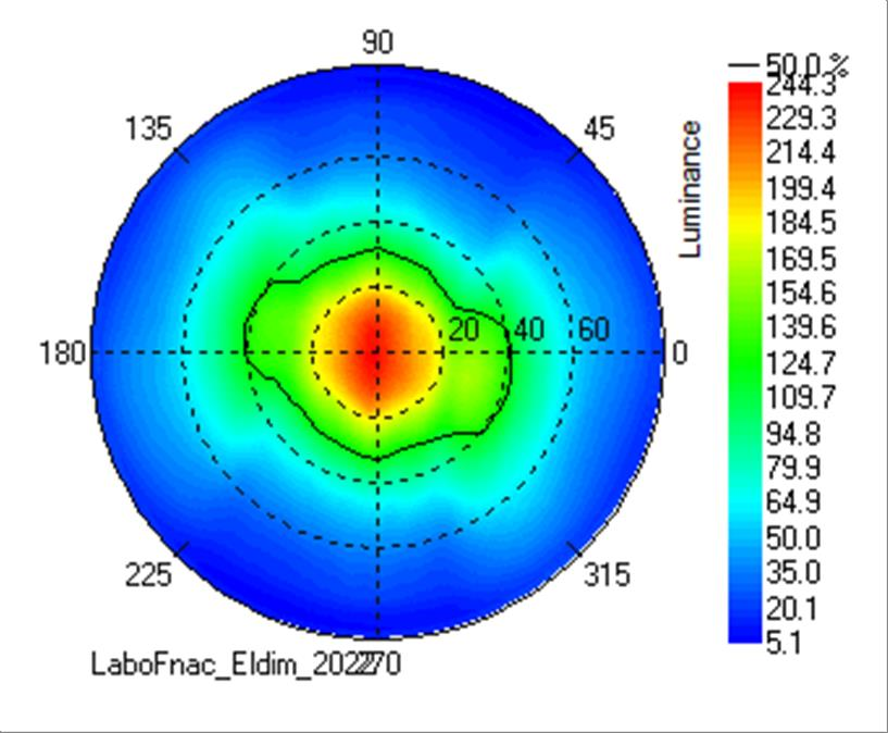 De la même façon, bien que le taux de contraste chute fortement dans les angles, il affiche toujours un niveau extrêmement élevé.