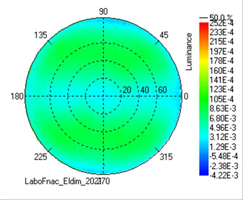 Le test de directivité nous permet d’évaluer la dérive des couleurs en fonction du point d’observation. Pour ce faire, la luminosité est réglée sur la valeur maximale pendant toute la durée du test. Le balayage est réalisé sur plusieurs points avec des positions d’observation différentes. Là encore, notre test a pour but d’évaluer les angles de vision du Samsung QE55QN90AAT, mais dans les noirs cette fois.