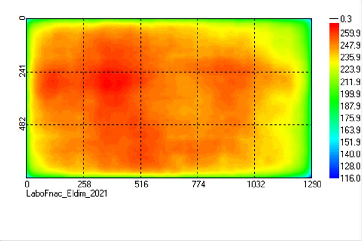 Enfin, à l’instar du QE55QN90AAT, le Samsung QE55QN95AAT s’est illustré dans notre test d’uniformité. En effet, la luminosité de la dalle de 55 pouces est homogène sur toute la surface, avec un écart négligeable de 16 % entre le point le moins lumineux et le plus lumineux. La luminosité maximale de 259 cd/m2 est atteinte sur la partie supérieure dans l’axe de la dalle. Le minimum de 217 cd/m2 est atteint sur les bords droit et gauche.