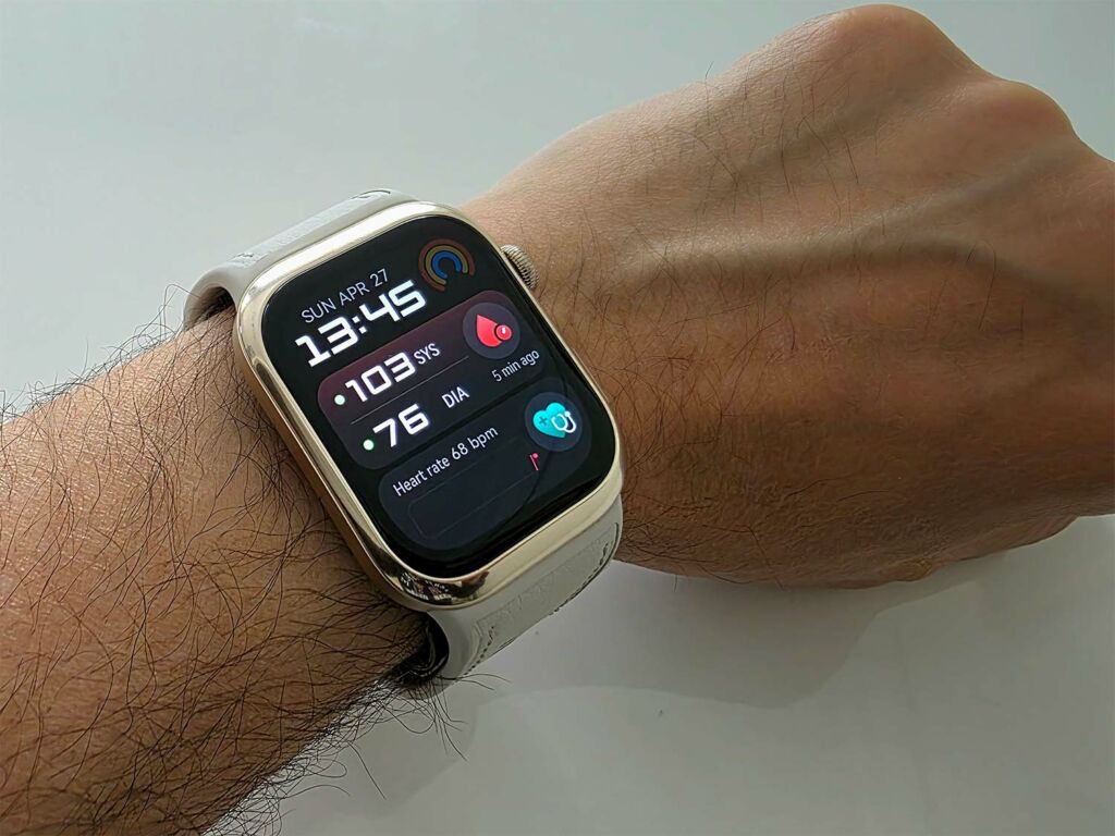 Cette technologie a même obtenu une certification médicale européenne (MDR Classe IIa), ce qui est un véritable gage de fiabilité. D’après nos propres comparatifs, réalisés dans le cabinet d’un médecin lui-même équipé de son tensiomètre habituel, la précision de la Watch D2 en matière de mesure de la tension artérielle est très satisfaisante.