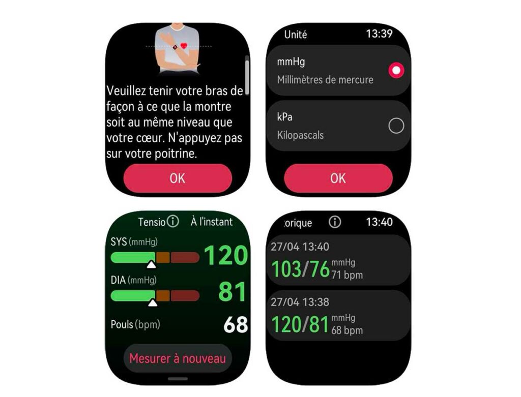 Notez tout de même que pour pouvoir en profiter, la mesure exige de respecter un protocole précis : être assis, le bras posé à hauteur du cœur, rester immobile pendant l’opération et s’assurer que le bracelet est correctement ajusté. Ces étapes alourdissent évidemment le processus, mais restent nécessaires pour garantir la fiabilité médicale.