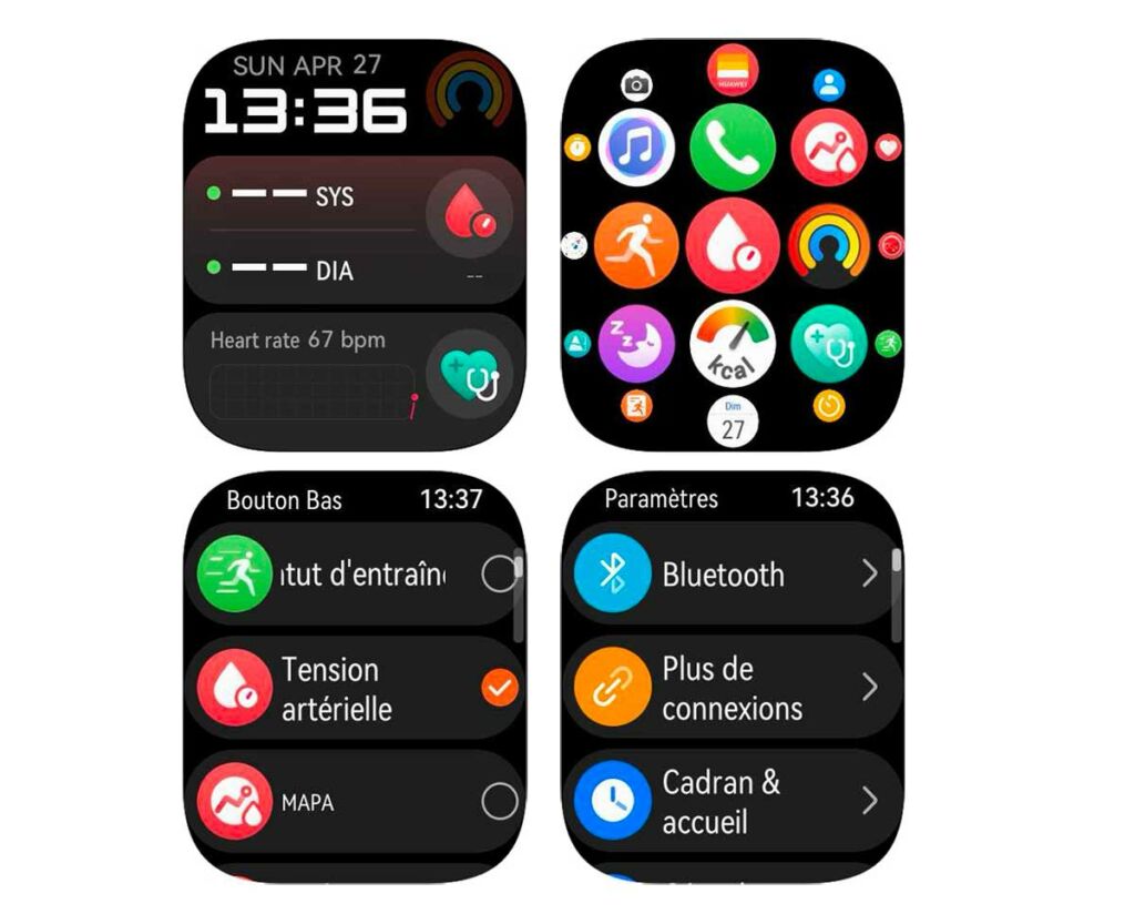- Le suivi santé complet (ECG, SpO2, température cutanée)