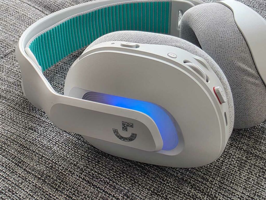 Une attention particulière a été portée à ceux qui utilisent ce casque avec des lunettes. Logitech affirme que la pression de serrage a été pensée pour éviter la gêne bien connue habituellement associée au port d’un tel casque par-dessus des montures. Autre petite attention : l’inclinaison des panneaux RGB a été étudiée pour ne pas causer de reflets gênants sur les verres. À l’usage, nous avons pu constater que le fabricant a tenu parole, dans la mesure où nous sommes nous-mêmes porteurs de lunettes et que nous avons effectivement pu porter le casque pendant de longues sessions sans ressentir le moindre inconfort.