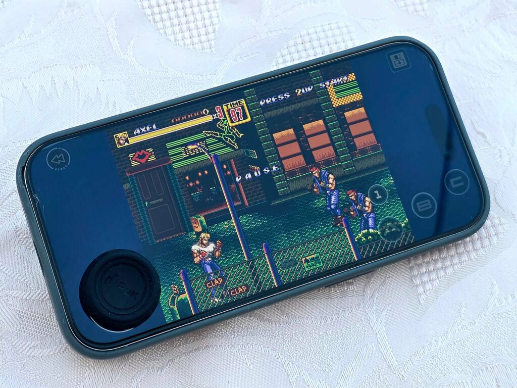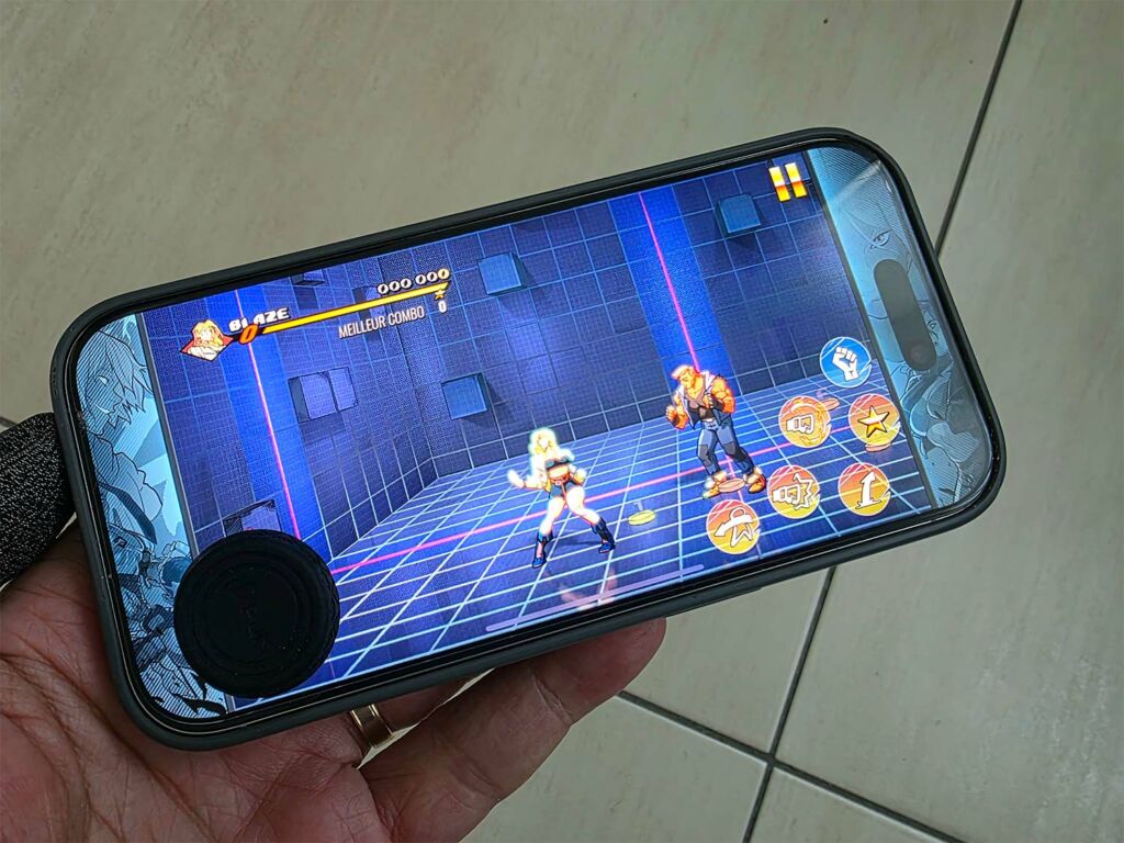 Le stick physique offre un contrôle tangible, une sensation de maîtrise que le glissement du pouce sur l’écran est tout simplement incapable de reproduire. Diriger le hérisson bleu devient plus intuitif, plus réactif. Si ce n’est évidemment pas la manière parfaite de jouer pour un puriste, c’est sans conteste une alternative idéale. Même constat pour Streets of Rage 2. Les contrôles tactiles de ce titre nous ont toujours frustré par le passé, surtout au moment d’enchaîner deux appuis vers l’avant pour déclencher une attaque spéciale. L’ensemble devient beaucoup plus agréable à pratiquer avec le PuK Thumbstick et un passage par les options pour grossir les touches tactiles sur la droite. Avec le plus récent Streets of Rage 4, c’est exactement la même chose et le jeu gagne beaucoup à être pratiqué avec cet accessoire.
