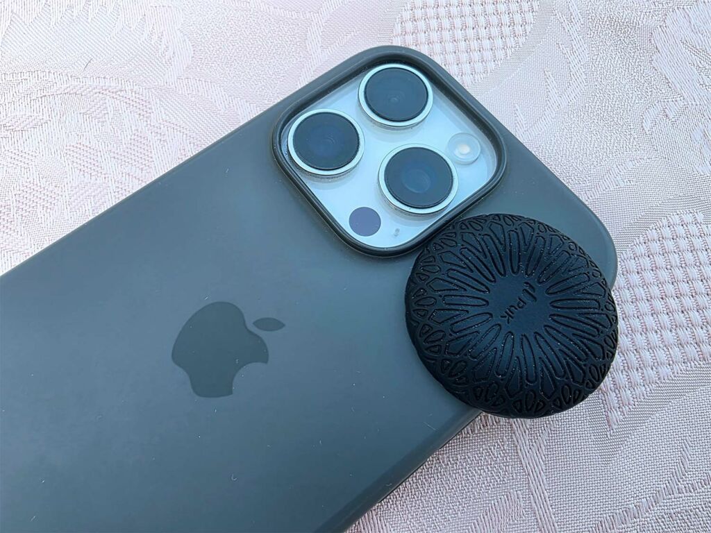 Le second souci est plus embêtant. Sur des smartphones dont la coque est particulièrement lisse et glissante, comme c’est le cas pour l’un des modèles avec lequel nous avons testé l’accessoire, à savoir le Samsung Galaxy S25 Ultra, l’aimant arrière a une fâcheuse tendance à dériver légèrement pendant le jeu. Ce glissement, même minime, oblige à réajuster sa position de temps en temps, ce qui peut casser le rythme. Une solution consiste à maintenir l’aimant en place avec l’index, mais cela n’est viable que pour les jeux ne nécessitant pas d’utiliser ce doigt pour d’autres actions. Conscient du problème, PuK Gaming propose d’ailleurs à la vente un disque adhésif (« sticky pad ») optionnel pour améliorer la fixation, un accessoire qui aurait peut-être mérité d’être inclus de base. Notez tout de même que ce problème ne concerne que ceux qui utilisent leur téléphone sans coque de protection. Nous n’avons pour notre part rencontré aucun problème avec une coque transparente très basique en silicone souple ou avec les coques Apple officielles au silicone plus épais.