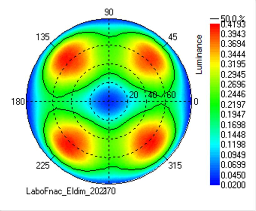 Lors de ce test, nous évaluons la dérive des couleurs en fonction du point d’observation. La luminosité est réglée sur la valeur maximale émise par le téléviseur pendant toute la durée de l’examen. Nous effectuons alors un balayage sur plusieurs points avec des positions d’observation différentes. Pour dire les choses différemment, ce test nous permet une fois encore d’évaluer les angles de vision du Samsung UE65TU6925K, en nous concentrant cette fois sur la profondeur des noirs et sur le taux de contraste.