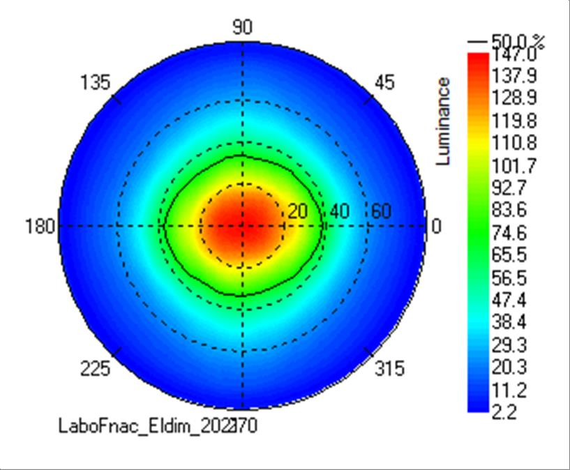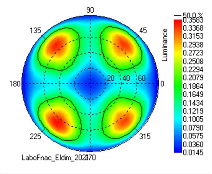 Le test de directivité nous permet d’évaluer la dérive des couleurs en fonction du point d’observation. Pour ce faire, la luminosité est réglée sur la valeur maximale pendant toute la durée du test. Le balayage est réalisé sur plusieurs points avec des positions d’observation différentes. De cette façon, nous sommes en mesure d’évaluer les angles de vision du Samsung UE58AU7105K, mais cette fois en nous concentrant sur la profondeur des noirs et sur le taux de contraste.