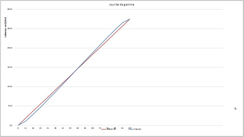 La progressivité des téléviseurs est évaluée par le Labo Fnac en comparant la courbe de gamma du signal vidéo de référence en entrée à celle du signal en sortie. Ce faisant, il est possible de déterminer la capacité à restituer les dégradés avec deux courbes qui doivent être aussi proches que possible. Le Xiaomi TV A Pro 55 se tire particulièrement bien de cet exercice, prouvant qu’il sera capable de restituer correctement les dégradés et les différents niveaux de gris.