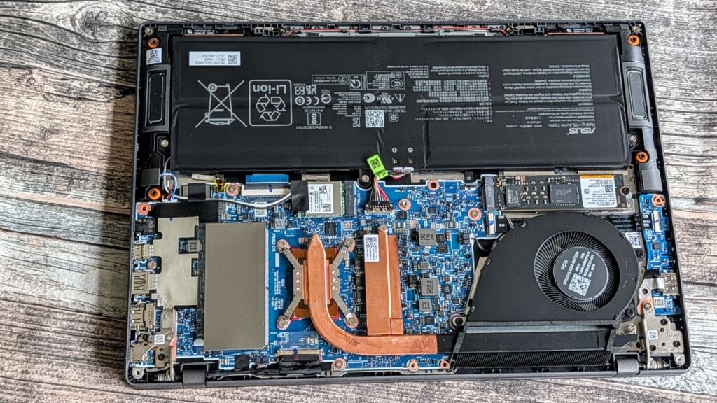 Sous le capot de ce VivoBook S14, Asus a installé un moteur plutôt bien taillé pour le job. On y déniche un SoC AMD Ryzen AI 7 350. Il se compose de huit cœurs pouvant atteindre 5 GHz. Il est épaulé dans sa tâche par un GPU AMD Radeon 850M, 16 Go de RAM (une version avec 32 Go de RAM est également disponible) et un espace de stockage qui repose sur un SSD PCIe Gen 4 de 512 Go.